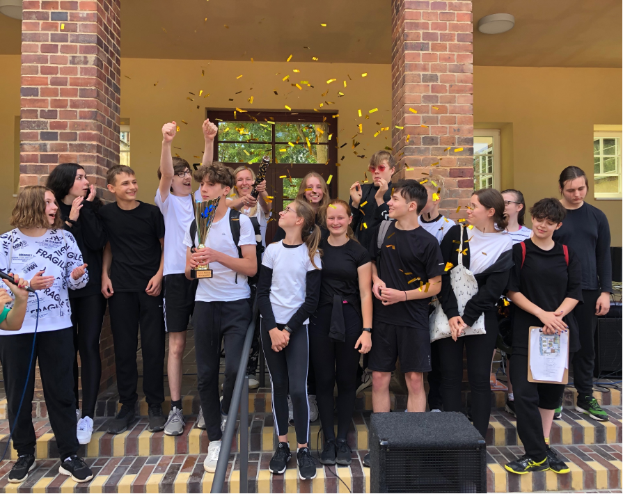 Am Montag, den 11.7. fand zum ersten Mal unser neues alternatives Sportfest, die Garden Games, statt. In 14 vielfältigen Stationen traten die Schüler:innen klassenweise gegeneinander an. Die Stationen forderten den Schüler:innen sowohl Kraft, Schnelligkeit, Koordination und Ausdauer als auch Kooperationsfähigkeit und Teamgeist ab, da die meisten Stationen in der Gruppe gemeistert werden mussten. Für die bunte Vielfalt an und zwischen den Stationen sorgten unsere Schüler:innen durch ihre kreativen Outfits. Die perfekte musikalische Untermalung steuerten DJ Benno und unsere Schulband, Medium Green, bei. Ihren Höhepunkt fanden die Garden Games letztlich in der Siegerehrung. Wir gratulieren den Gewinner:innen und Platzierten ganz herzlich und bedanken uns bei allen Teilnehmer:innen für den gelungen Auftakt einer neuen Tradition an Board der MS Palmengarten!