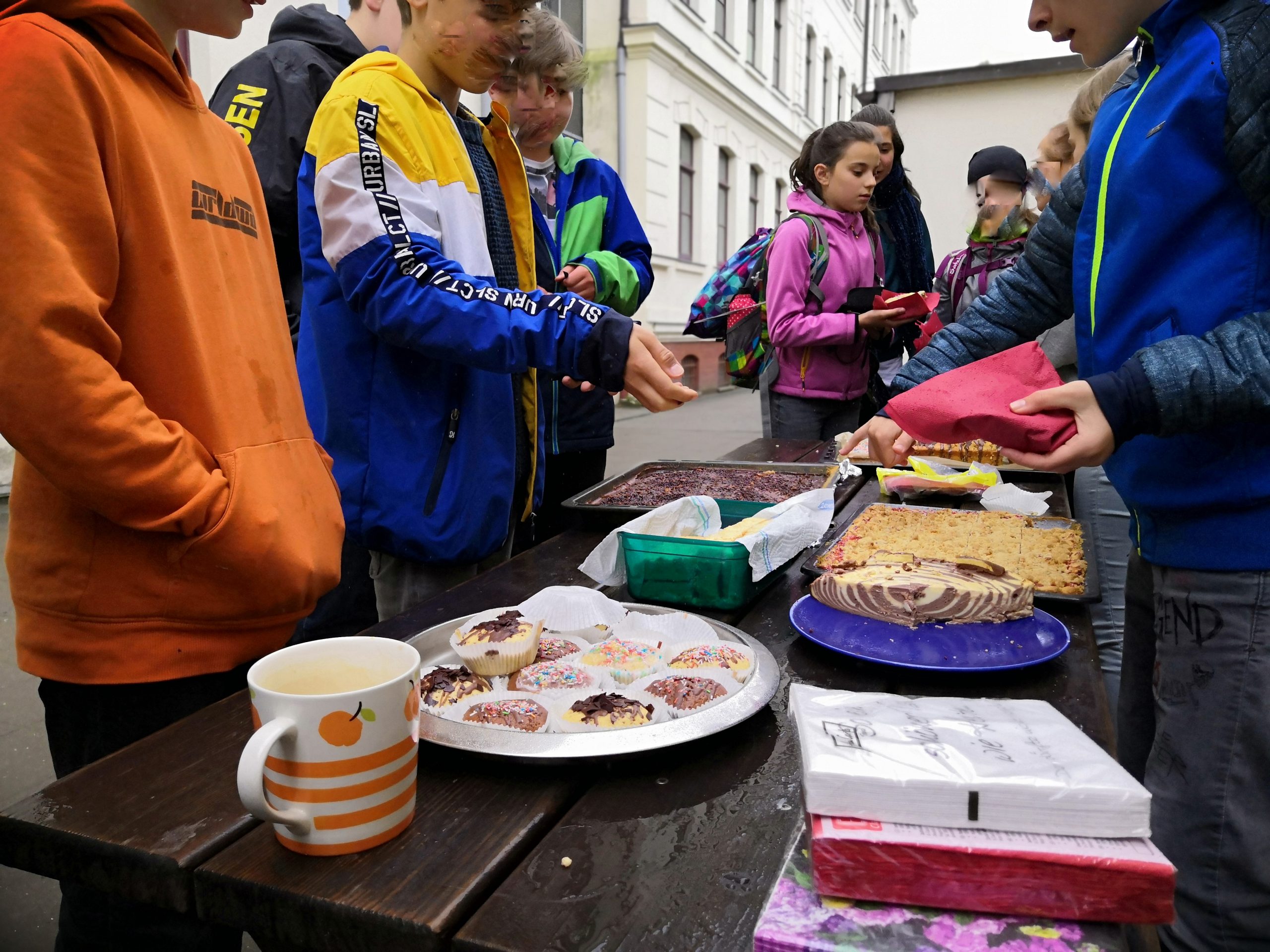 Seit einigen Wochen haben sich die SchülerInnen der Klasse 6/1 mit dem Thema Armut auseinandergesetzt. Mit der Desing-Thinking-Methode konnten sich die SchülerInnen durch Interviews dem Begriff Armut und seiner Auswirkungen nähern. Insbesondere wurden Erscheinungsformen von Armut im täglichen Umfeld der Kinder herausgearbeitet. Im Rahmen der Methode wurden die SchülerInnen in Kleingruppen angeleitet eigene Ideen für Projekte gegen Armut zu entwickeln. Diese Projektideen wurden der Klasse vorgestellt und eine konkrete Projektplanung mit Fristen und Zuständigkeiten herausgearbeitet. Unter anderem entstand die Idee einen Kuchenbasar zu organisieren und die Erlöse einer gemeinnützigen Organisation zu spenden. Dieses Vorhaben wurde am 16.05.2019 in die Tat umgesetzt und fand regen Zuspruch der SchülerInnen der Schule in der Karl-Heine-Straße. Diese versorgten sich mit einer Wegzehrung für den guten Zweck. Das eingenommene Geld konnte je zur Hälfte dem Förderverein sowie einer lokalen Hilfsorganisation übergeben werden.