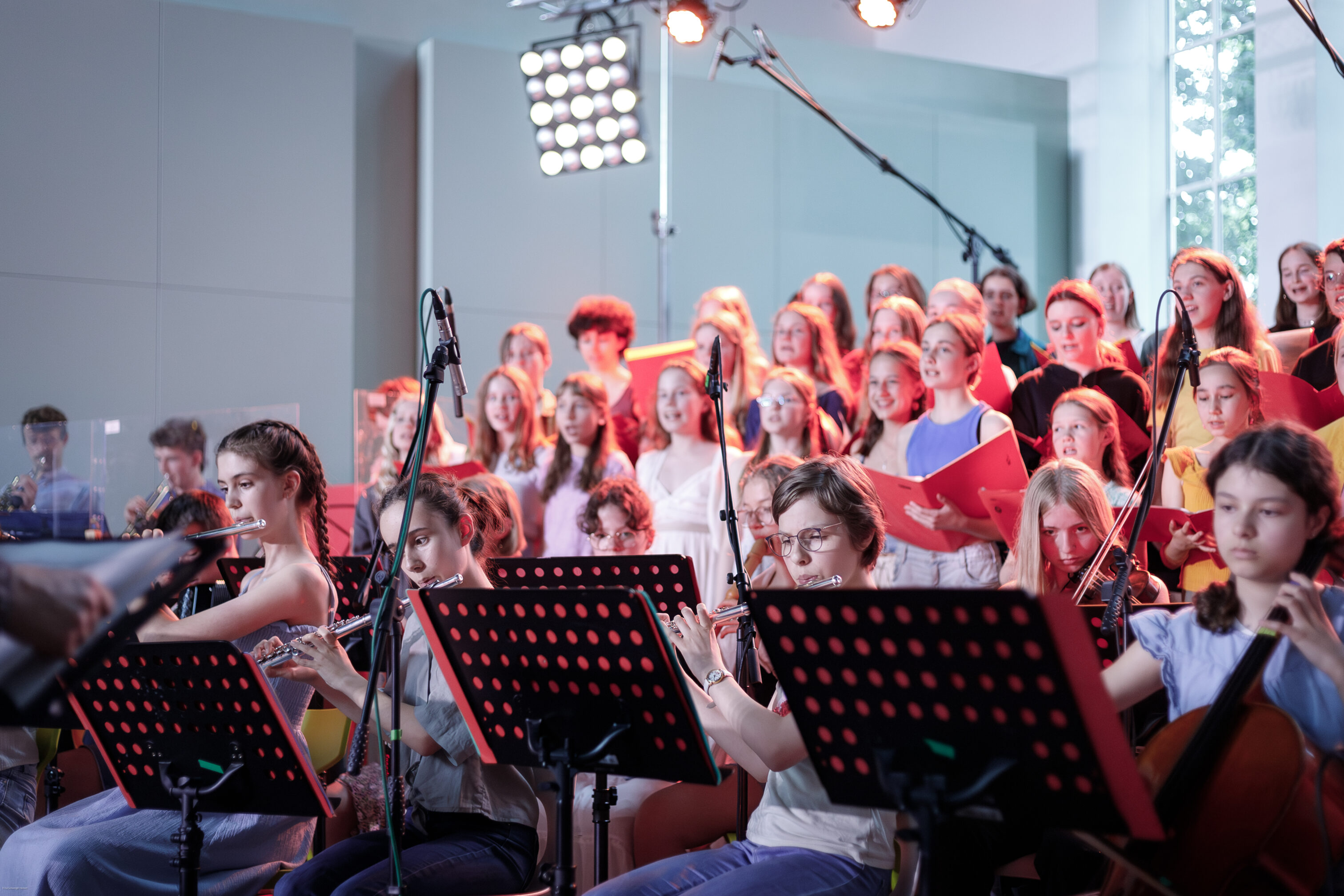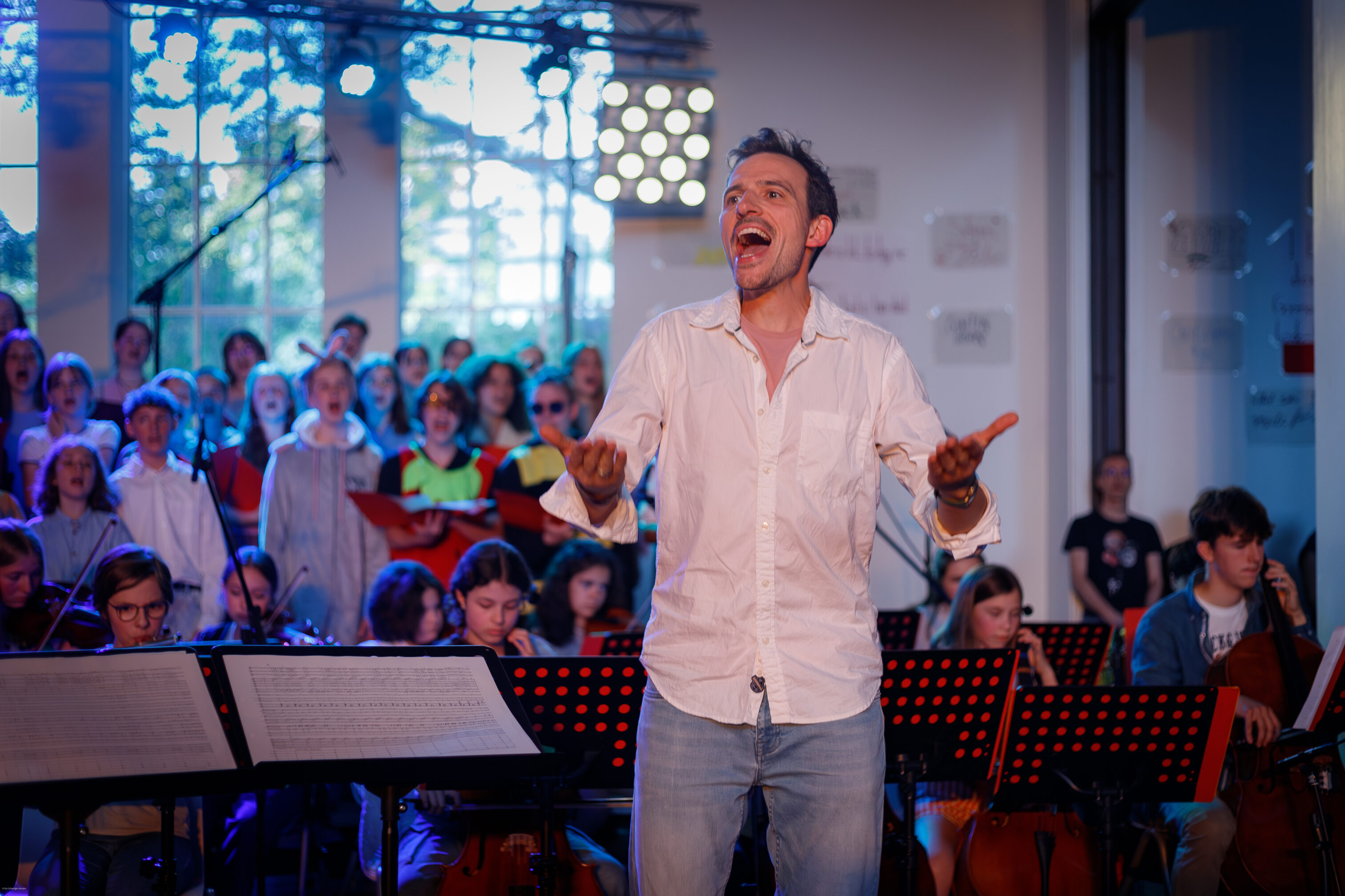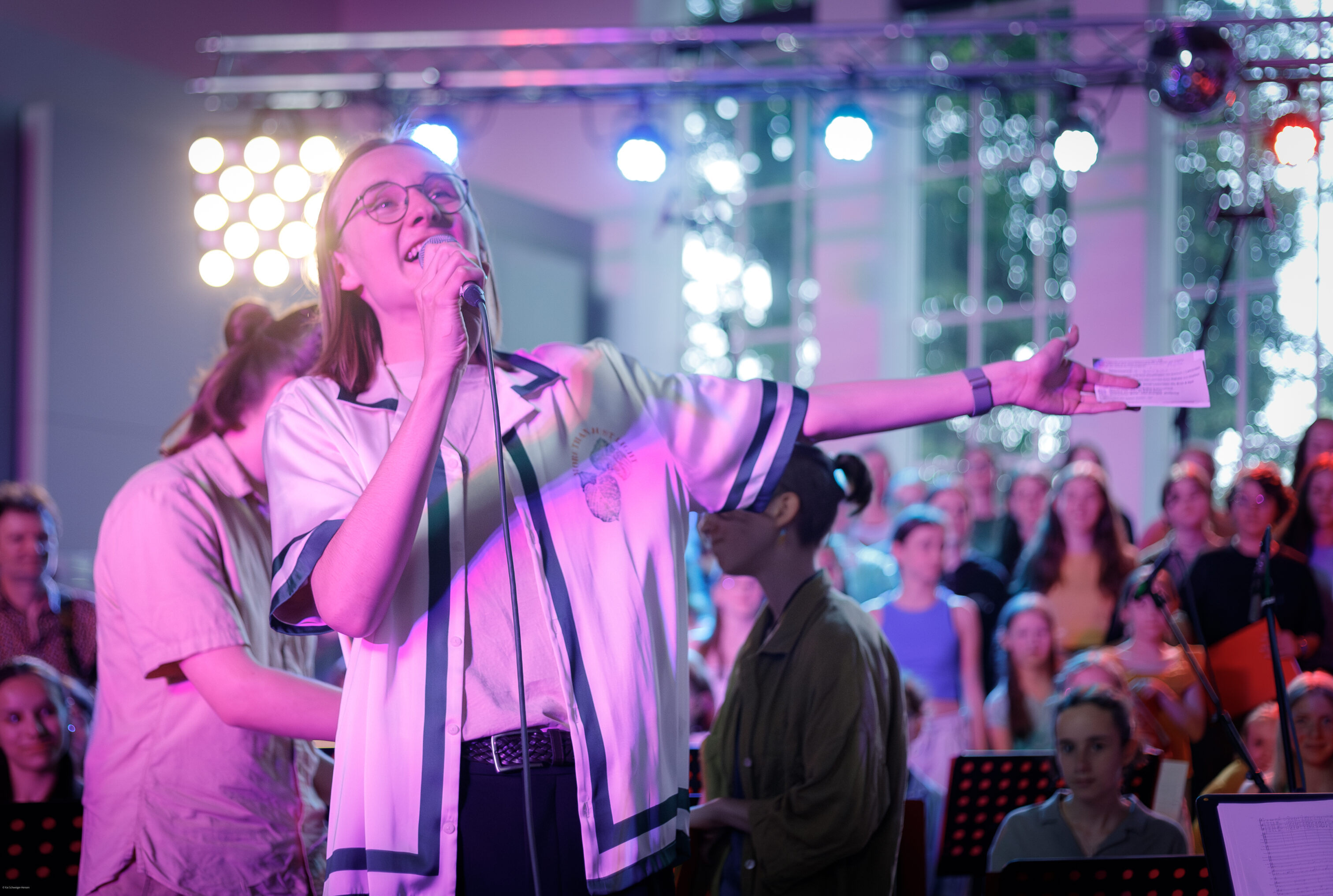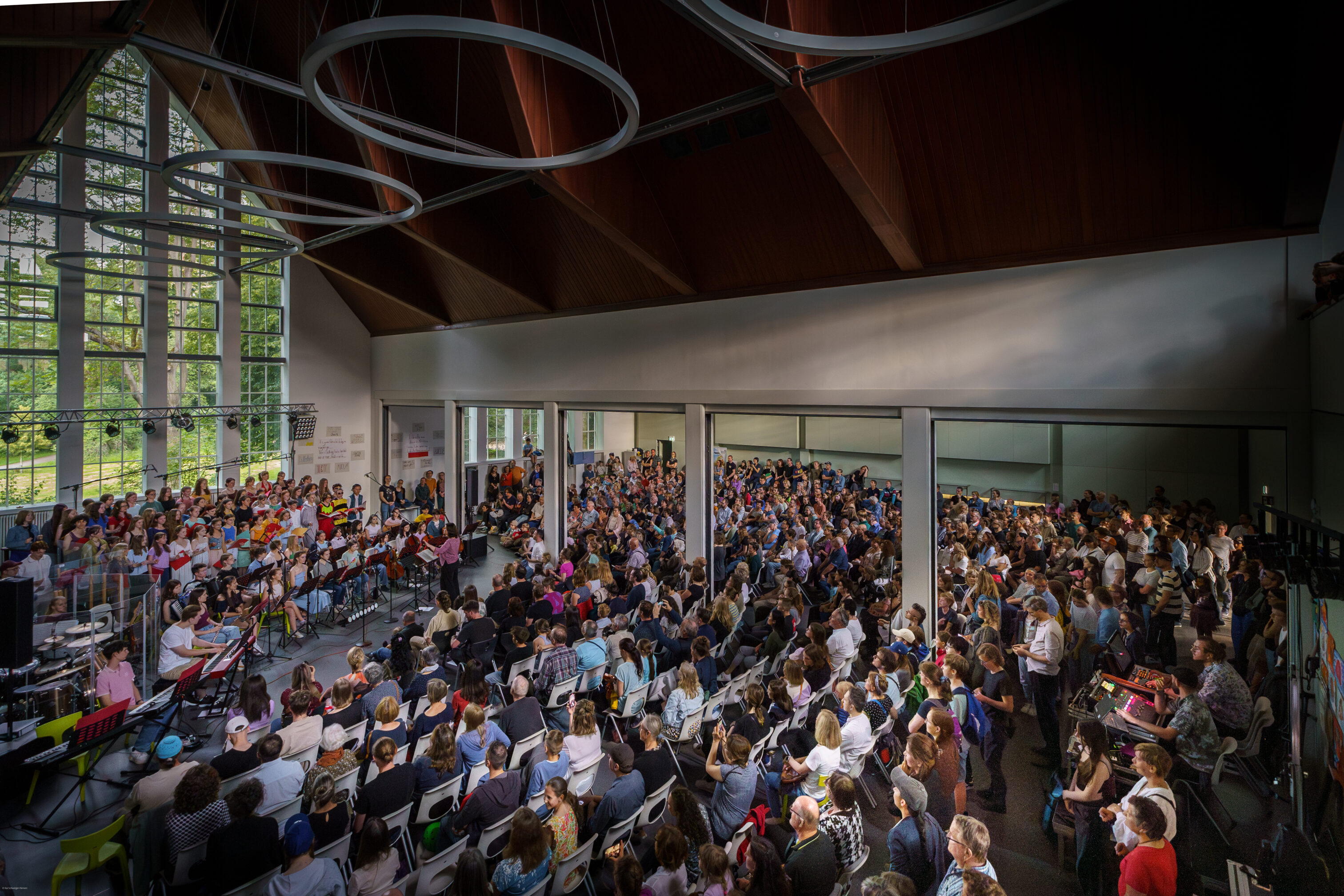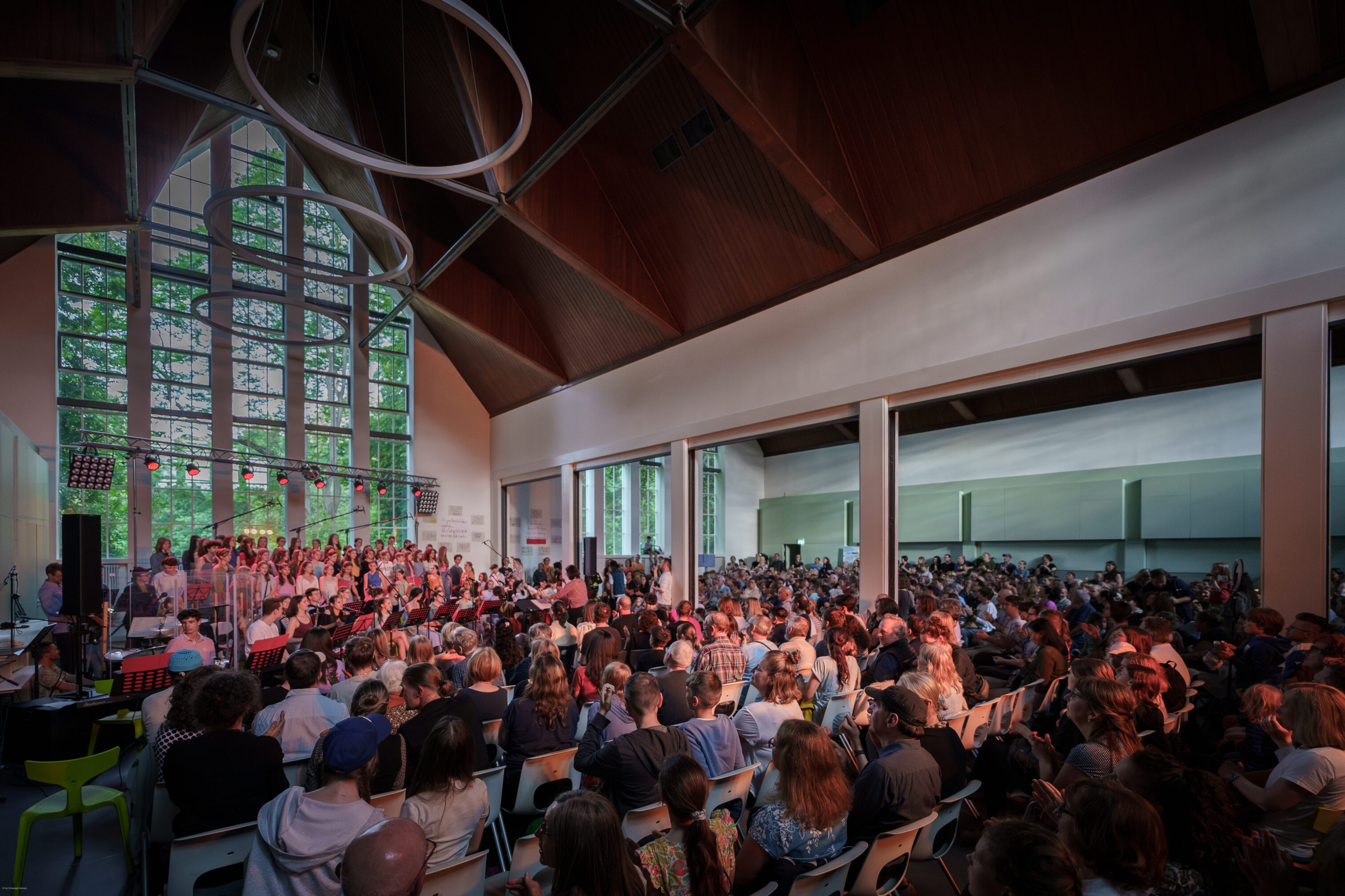 mit Musik des Westchores und des Westorchesters arrangiert von Christoph Scholtz und Kai Schweiger-Hensen sowie Auftritten der Schulbands Die Taubmacher und BISON.