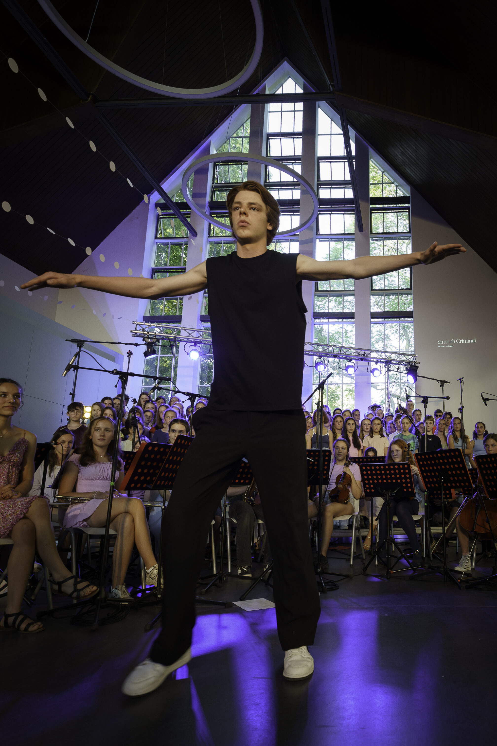 Mit Musik des Westchores und des Westorchesters – arrangiert von Christoph Scholtz und Kai Schweiger-Hensen. Außerdem gab es Performances von LEHRM, KAPITÄN LALA UND DIE SINGFLUT und zahlreichen Bands der Lernenden, die ihre Ergebnisse aus dem Profil und dem Musikunterricht präsentierten. Für einen angemessenen Ausklang mit fetten Beats unter Sternenhimmel sorgte DJ Benno.