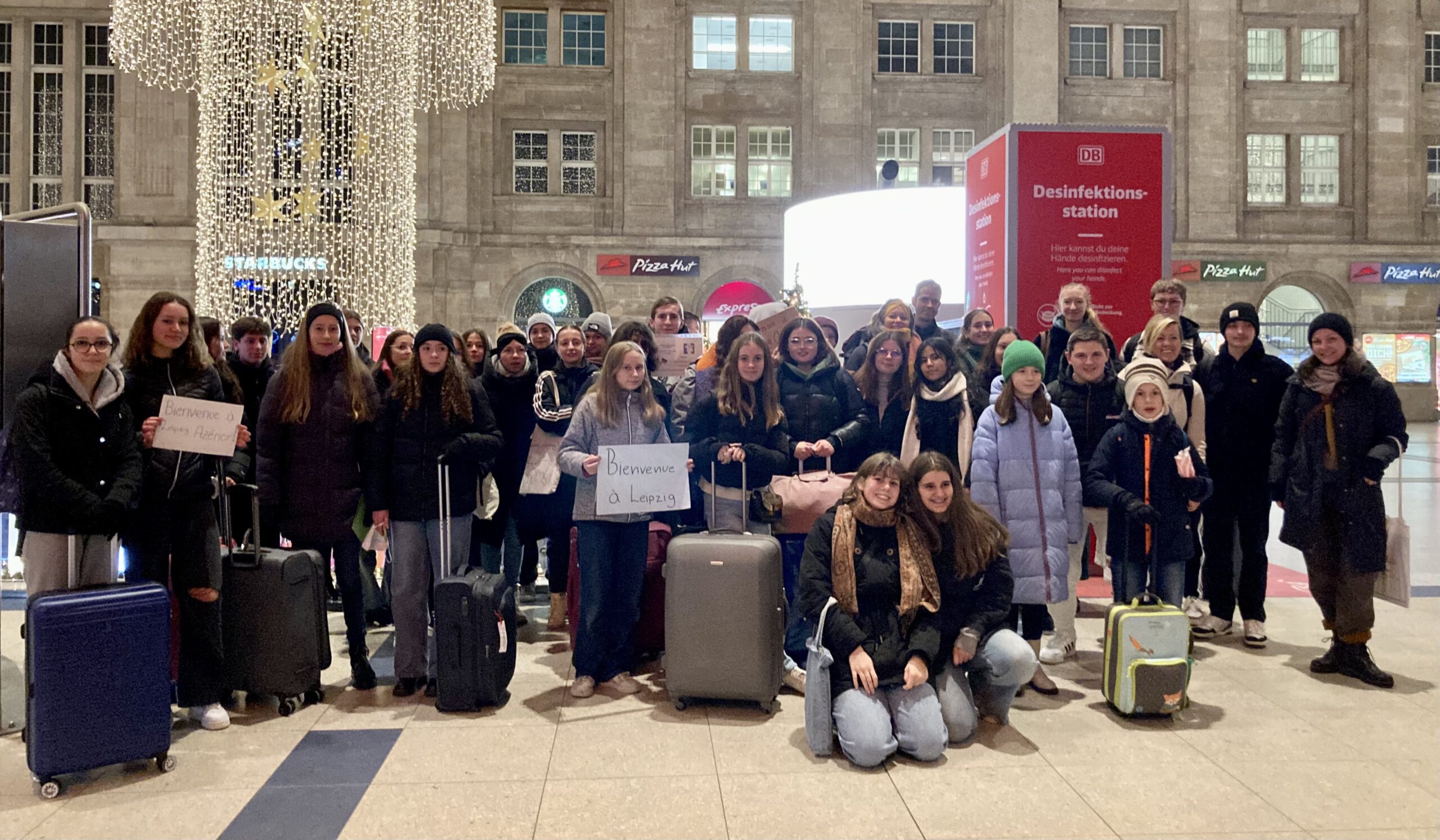 Am Freitagabend, den 2.12. 2022, haben wir die französischen Schüler*innen auf dem Bahnhof empfangen. Erschöpft und müde nach einer zwölfstündigen Fahrt von Brest nach Leipzig wurden sie herzlich von ihren Austauschschüler*innen willkommen geheißen. Trotz der Müdigkeit haben sich alle riesig gefreut, sich endlich kennenlernen zu dürfen.